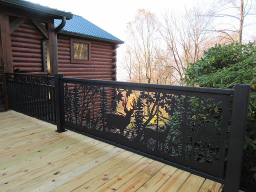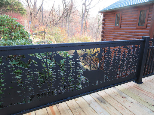 NatureRails deck railing panels are cut from heavy gauge steel or aluminum by a high-pressure state-of-the-art water jet machine. Nature Rails fabricates its art designs with use of a water jet machine as well as laser. After the design is cut from the metal it is sandblasted and acid bath dipped for the best clean surface to apply the powder coat to. For exterior products, a thick primer layer of primer powder coating is applied, and then the second layer of powder coating, in the color of your choice, is sprayed on. The decorative railing is then put into an enormous oven to bake on the powder coating at high temperatures.