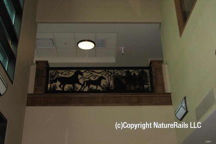 NatureRails have a pre designed collection of decorative railing panels in typical sizes. You can also create your own custom decorative railing panels as well with whatever mountain style, rocks, water, foreground and animals you like. Or maybe modern decorative railing panels are more your design style. Work with us to create the perfect geometric or style that works in your interior design. Decorative railing panels are a great way to add flair and interest to tired spaces in the home. They are made to 4” building codes specifications, and a typical height of 30” is used for installations requiring a 36” finished installation height. We can also modify your sizing and bill to the nearest inch for taller height requirements, or special projects.